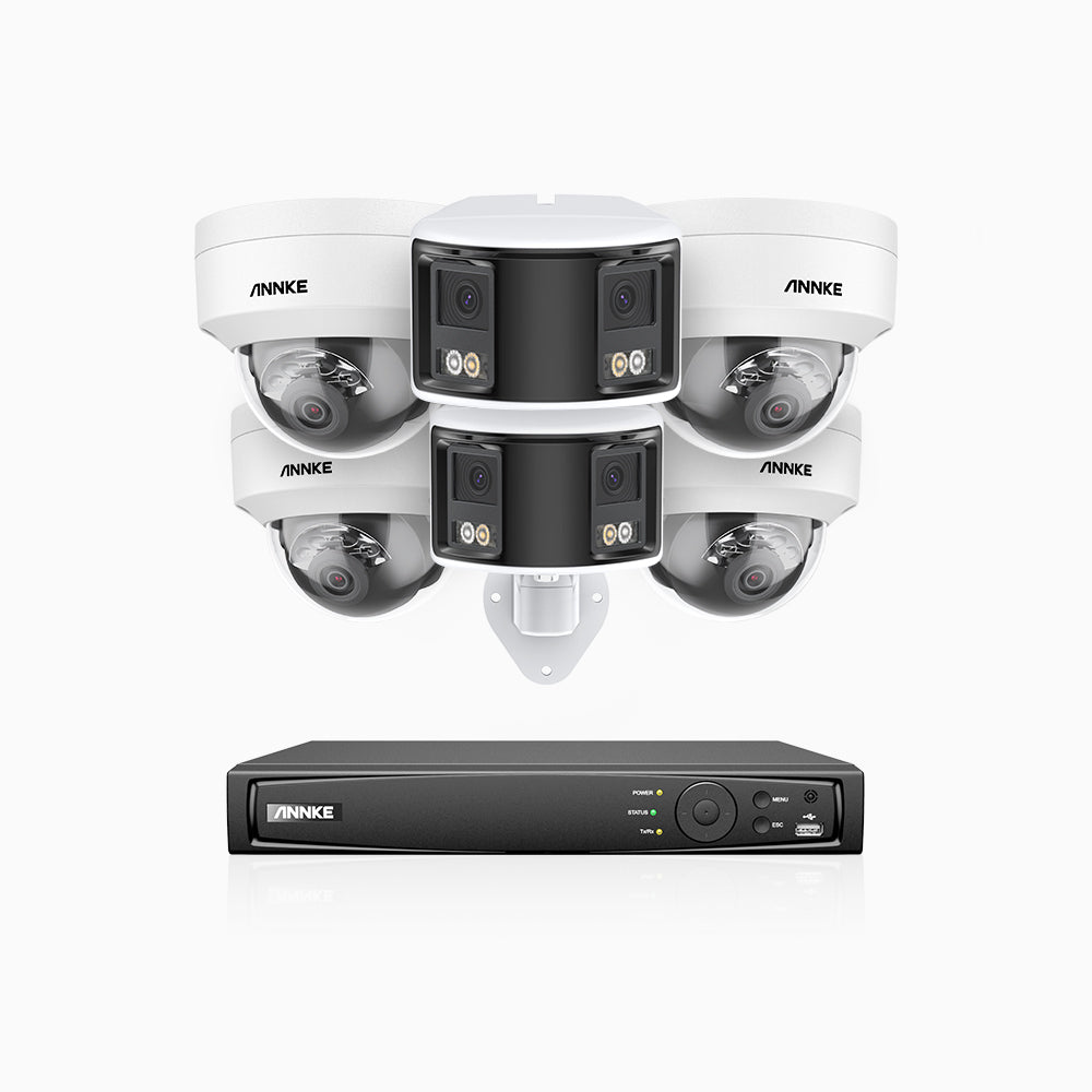 HDCK680 - 8 Channel PoE NVR Security System with Four 4K Cameras & Two 6MP Dual Lens Panoramic Camera (180° Ultra Wide Angle), Human & Vehicle Detection, Built-in Microphone, Two-Way Audio