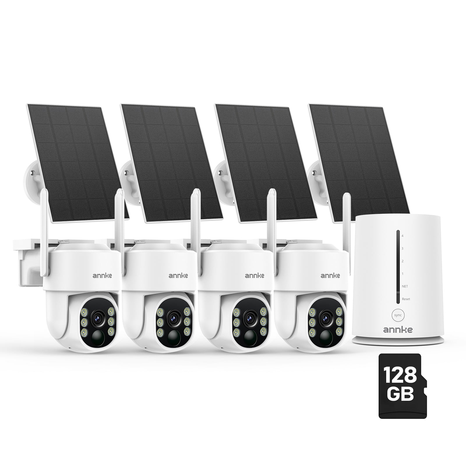 ANNKE 4MP 2K Solar Security Camera Wireless Outdoor, 5MP 4 Cam-Kit Home Surveillance System, 2.4&5G WiFi, Two-Way Audio, AI Human Detection, Spotlight Alarm,360°View, Color Night, 128GB Memory Card