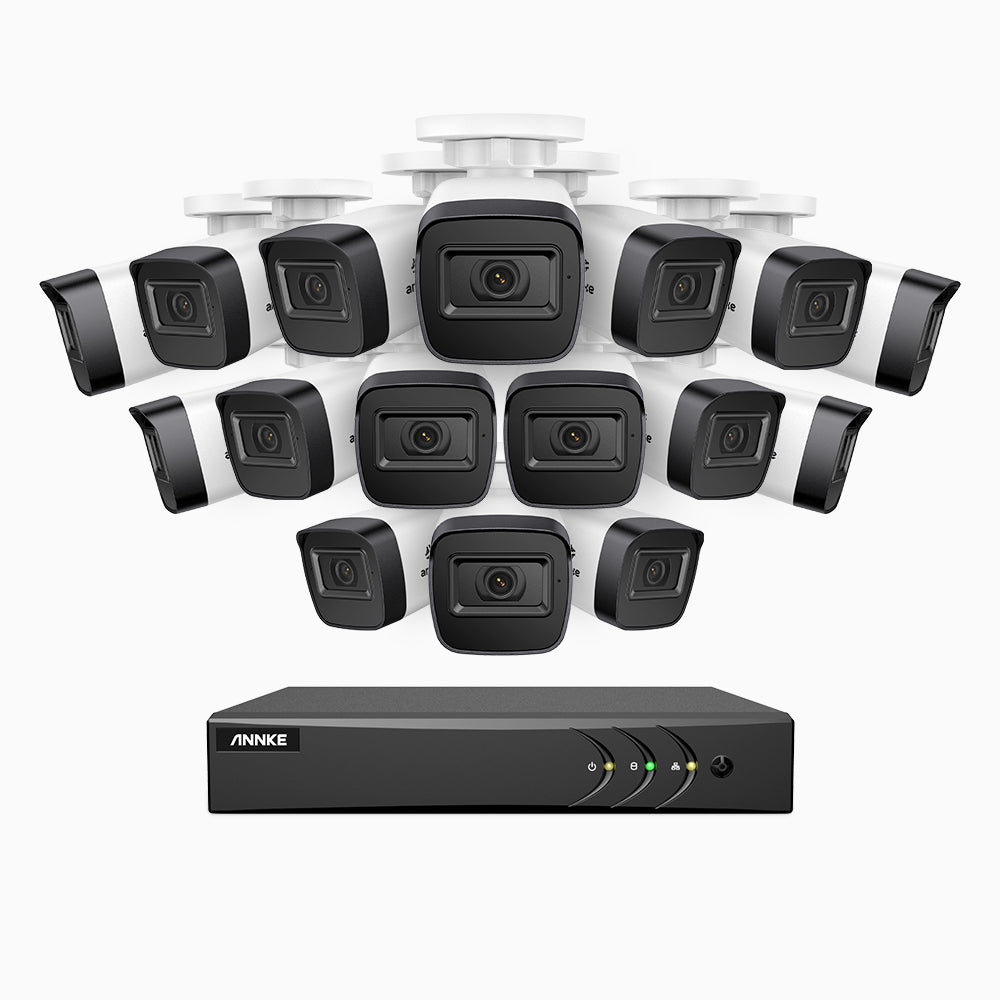 EL200 - 1080p 16 Channel Outdoor Wired Security CCTV System with 16 Cameras, 3.6 MM Lens, Smart DVR with Human & Vehicle Detection, 66 ft Infrared Night Vision, 4-in-1 Output Signal, IP67
