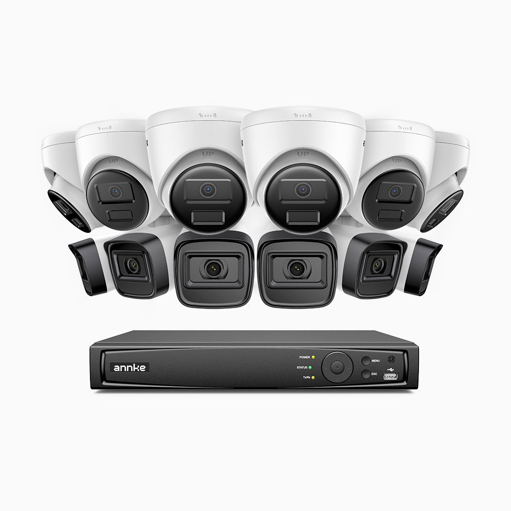 H300 - 2K 3MP 16 Channel PoE Security System with 6 Bullet & 6 Turret Cameras, EXIR 2.0 Night Vision, Motion Detection, H.265+, IP67 Waterproof