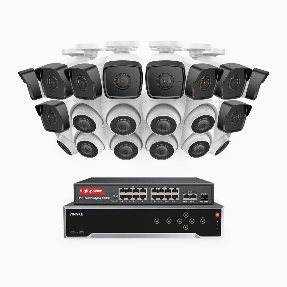 H500 - 3K 32 Channel PoE Security System with 10 Bullet & 10 Turret Cameras, EXIR 2.0 Night Vision, Built-in Mic & SD Card Slot, Works with Alexa, 16-Port PoE Switch Included ,IP67 Waterproof, RTSP Supported