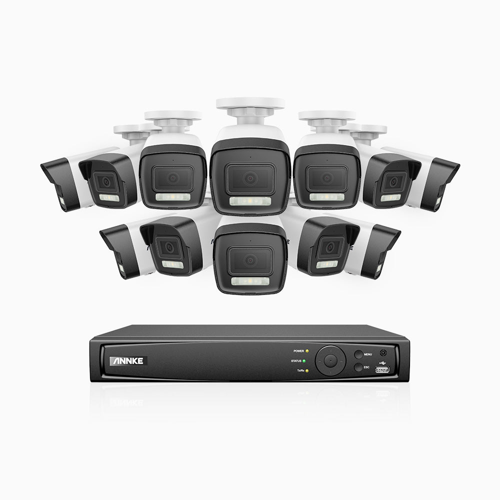 H500P - 3K 16 Channel 12 Cameras PoE Security System, Color & IR Night Vision, 3072*1728 Resolution, f/1.6 Aperture (0.005 Lux), Human & Vehicle Detection, Built-in Microphone,IP67
