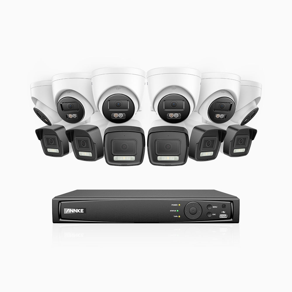 H500P - 3K 16 Channel PoE Security System with 6 Bullet & 6 Turret Cameras, Color & IR Night Vision, 3072*1728 Resolution, f/1.6 Aperture (0.005 Lux), Human & Vehicle Detection, Built-in Microphone,IP67
