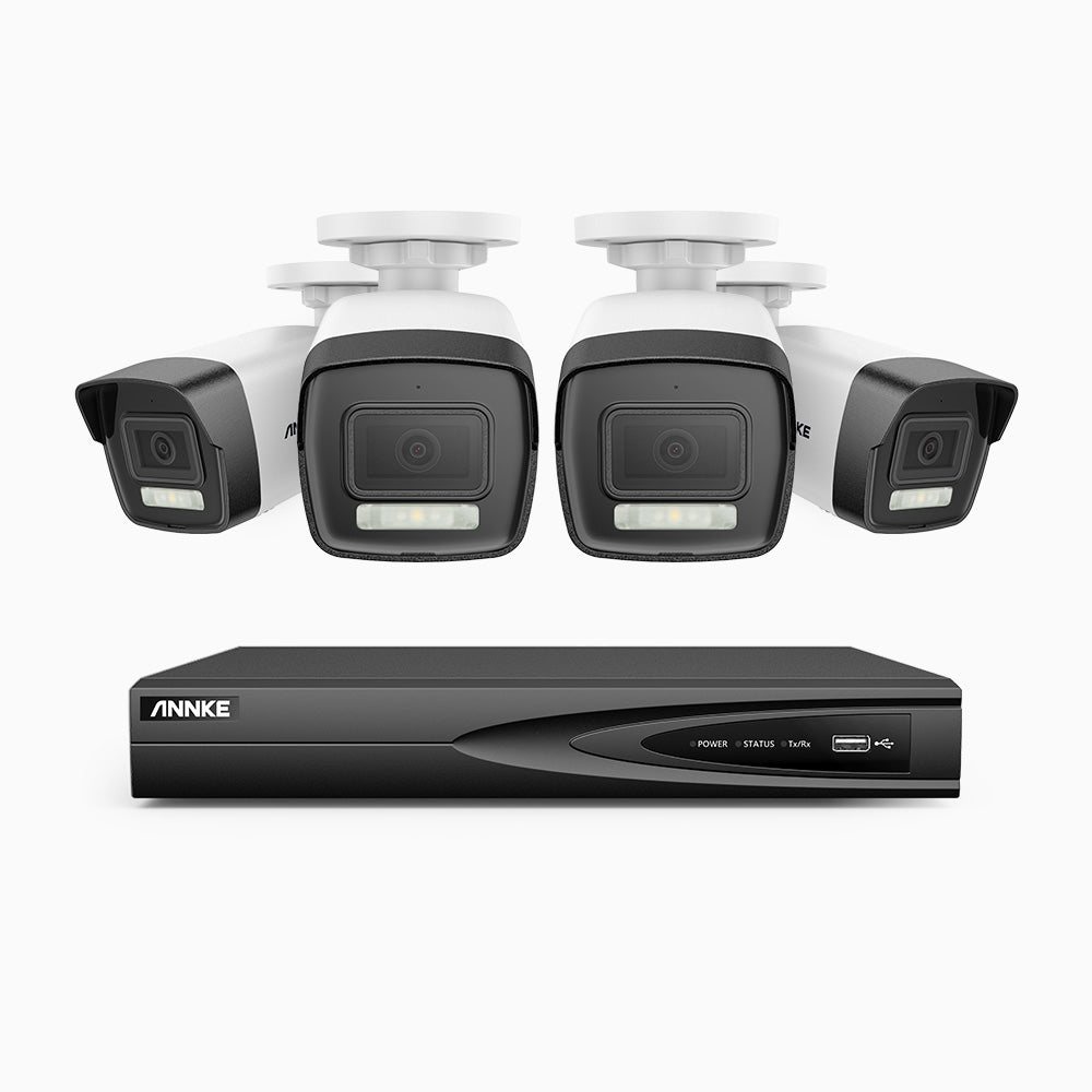 H500P - 3K 4 Channel 4 Cameras PoE Security System, Color & IR Night Vision, 3072*1728 Resolution, f/1.6 Aperture (0.005 Lux), Human & Vehicle Detection, Built-in Microphone,IP67