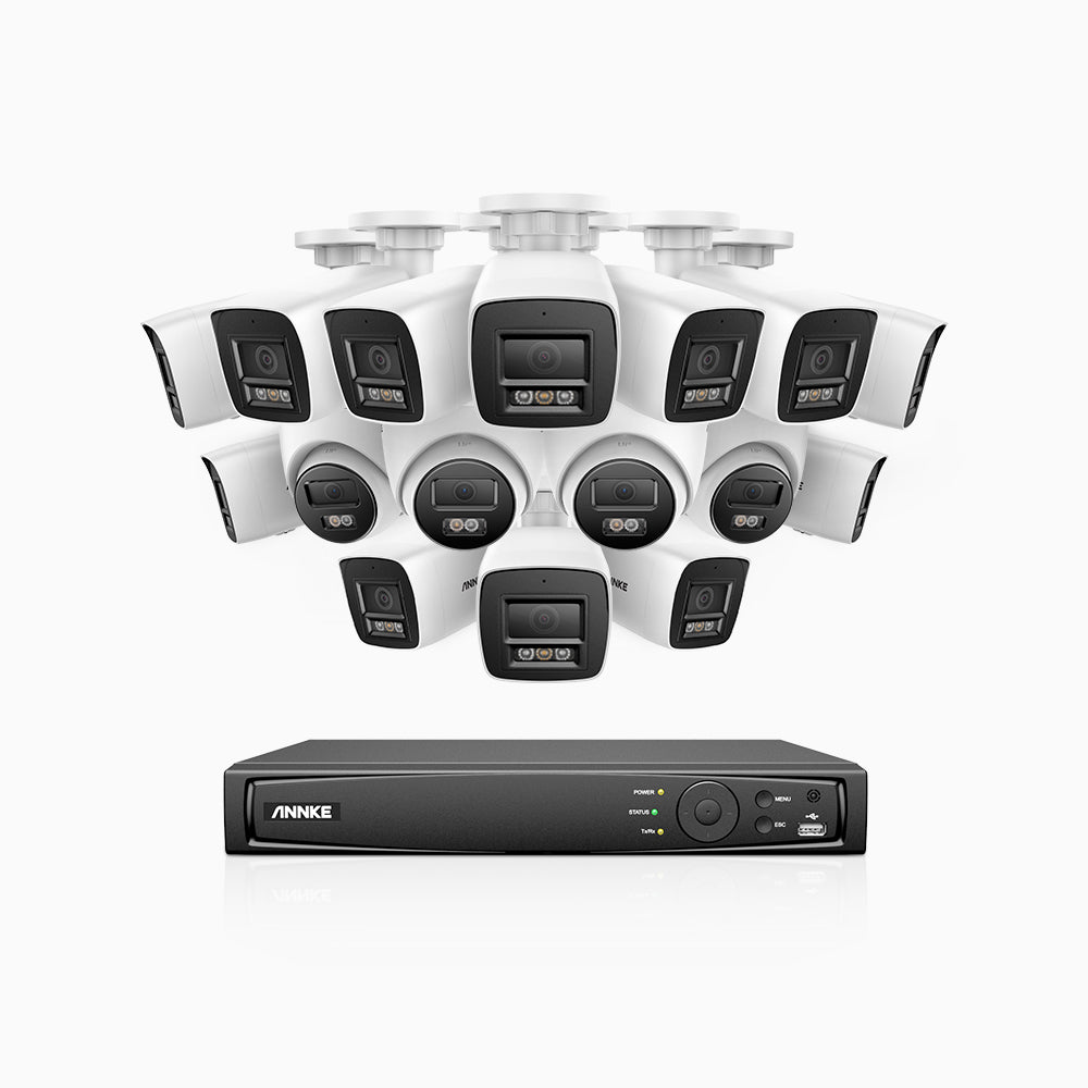 H800 - 4K 16 Channel PoE Security System with 12 Bullet & 4 Turret Cameras, Human & Vehicle Detection, Color & IR Night Vision, Built-in Mic, RTSP Supported