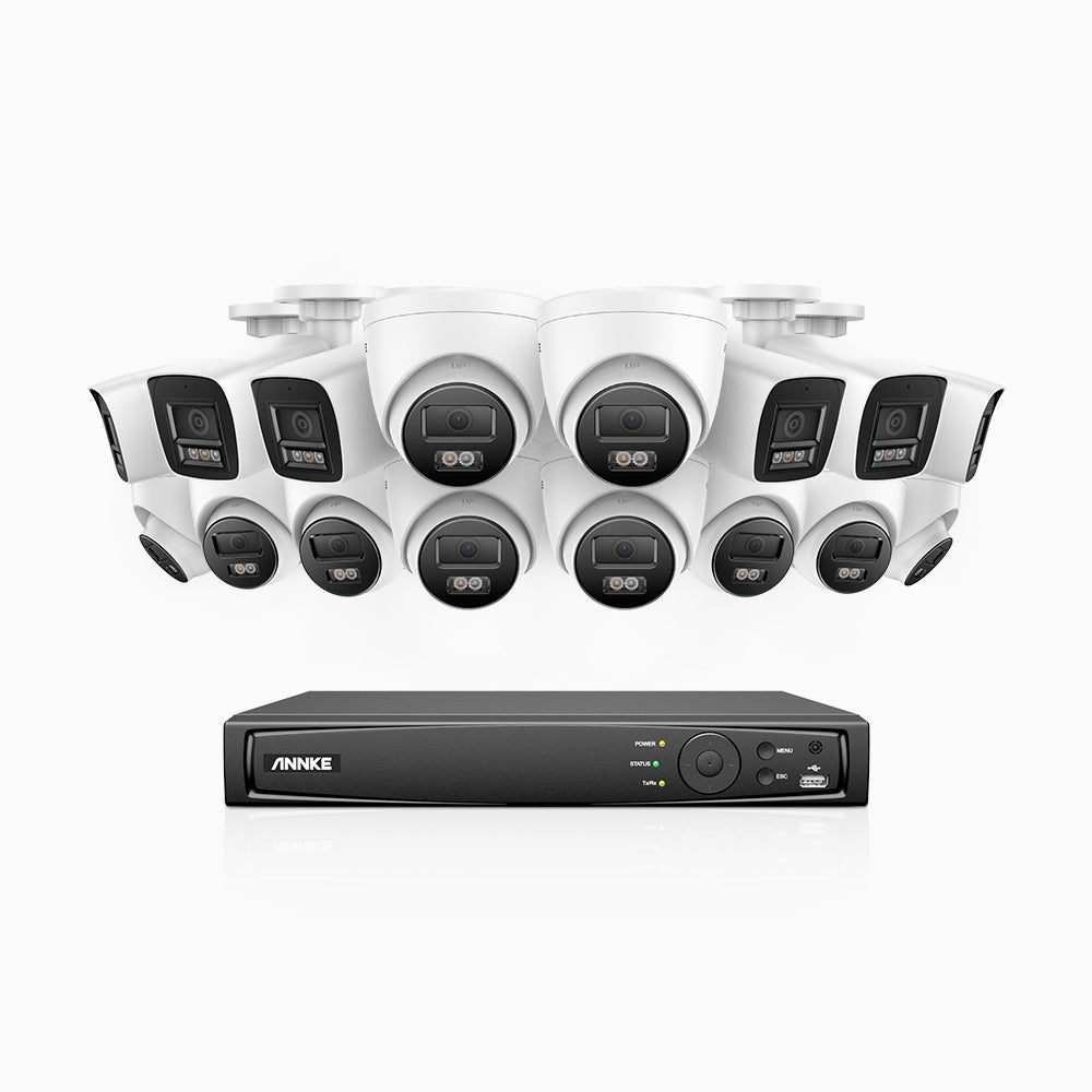 H800 - 4K 16 Channel PoE Security System with 6 Bullet & 10 Turret Cameras, Human & Vehicle Detection, Color & IR Night Vision, Built-in Mic, RTSP Supported