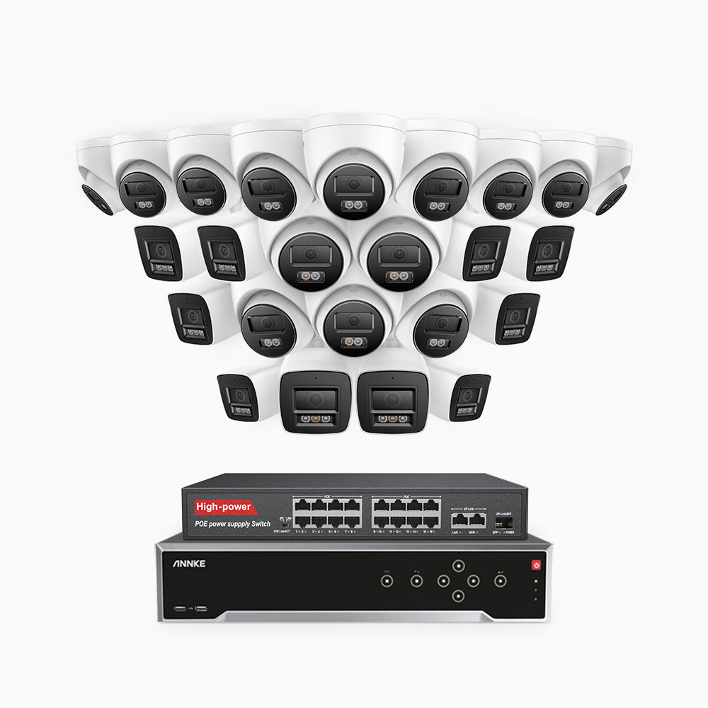 H800 - 4K 32 Channel PoE Security System with 10 Bullet & 14 Turret Cameras, Human & Vehicle Detection, Color & IR Night Vision, Built-in Mic, RTSP Supported, 16-Port PoE Switch Included