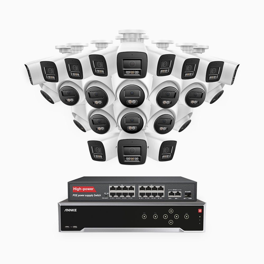H800 - 4K 32 Channel PoE Security System with 12 Bullet & 12 Turret Cameras, Human & Vehicle Detection, Color & IR Night Vision, Built-in Mic, RTSP Supported, 16-Port PoE Switch Included