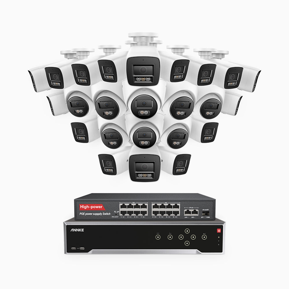 H800 - 4K 32 Channel PoE Security System with 16 Bullet & 8 Turret Cameras, Human & Vehicle Detection, Color & IR Night Vision, Built-in Mic, RTSP Supported, 16-Port PoE Switch Included