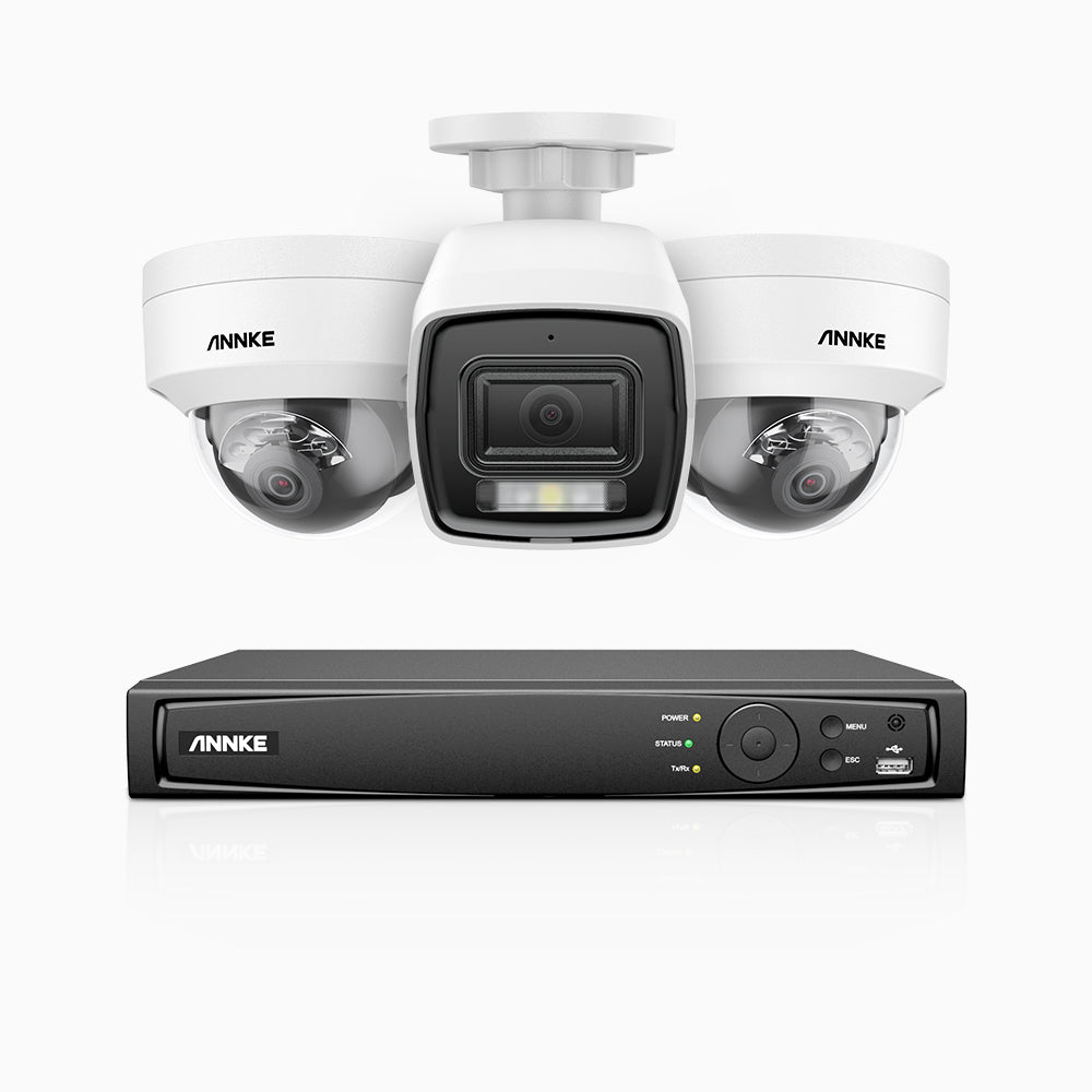 H800 - 4K 4 Channel PoE Security System with 1 Bullet & 2 Dome (IK10) Cameras, Vandal-Resistant, Human & Vehicle Detection, Built-in Mic, RTSP Supported