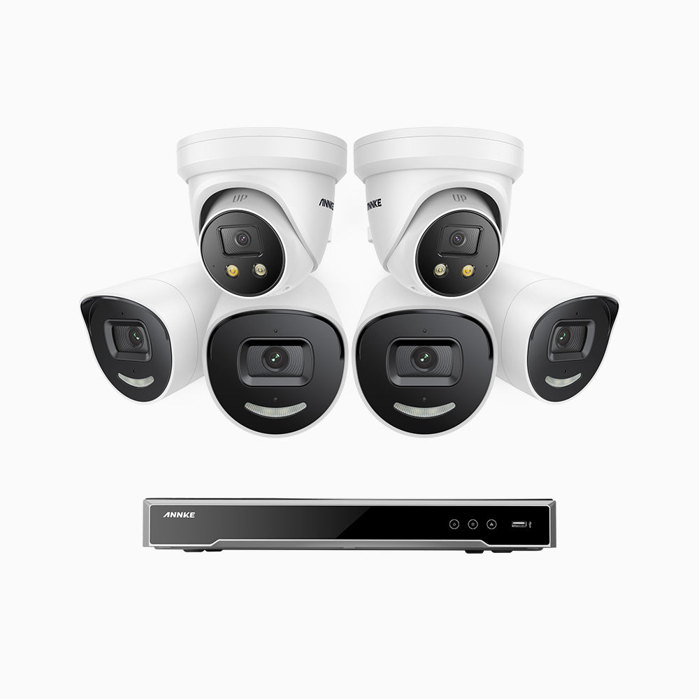 H800X - 4K 16 Channel PoE Security System with 4 Bullet & 2 Turret Cameras, 1/1.8'' BSI Sensor, f/1.6 Aperture (0.003 Lux), Siren & Strobe Alarm,Two-Way Audio, Human & Vehicle Detection, Perimeter Protection, All-Metal Housing