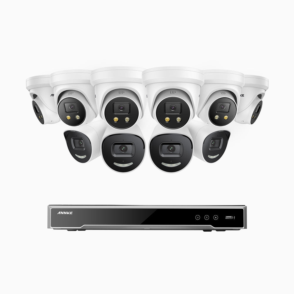 H800X - 4K 16 Channel PoE Security System with 4 Bullet & 6 Turret Cameras, 1/1.8'' BSI Sensor, f/1.6 Aperture (0.003 Lux), Siren & Strobe Alarm,Two-Way Audio, Human & Vehicle Detection, Perimeter Protection, Works with Alexa, All-Metal Housing
