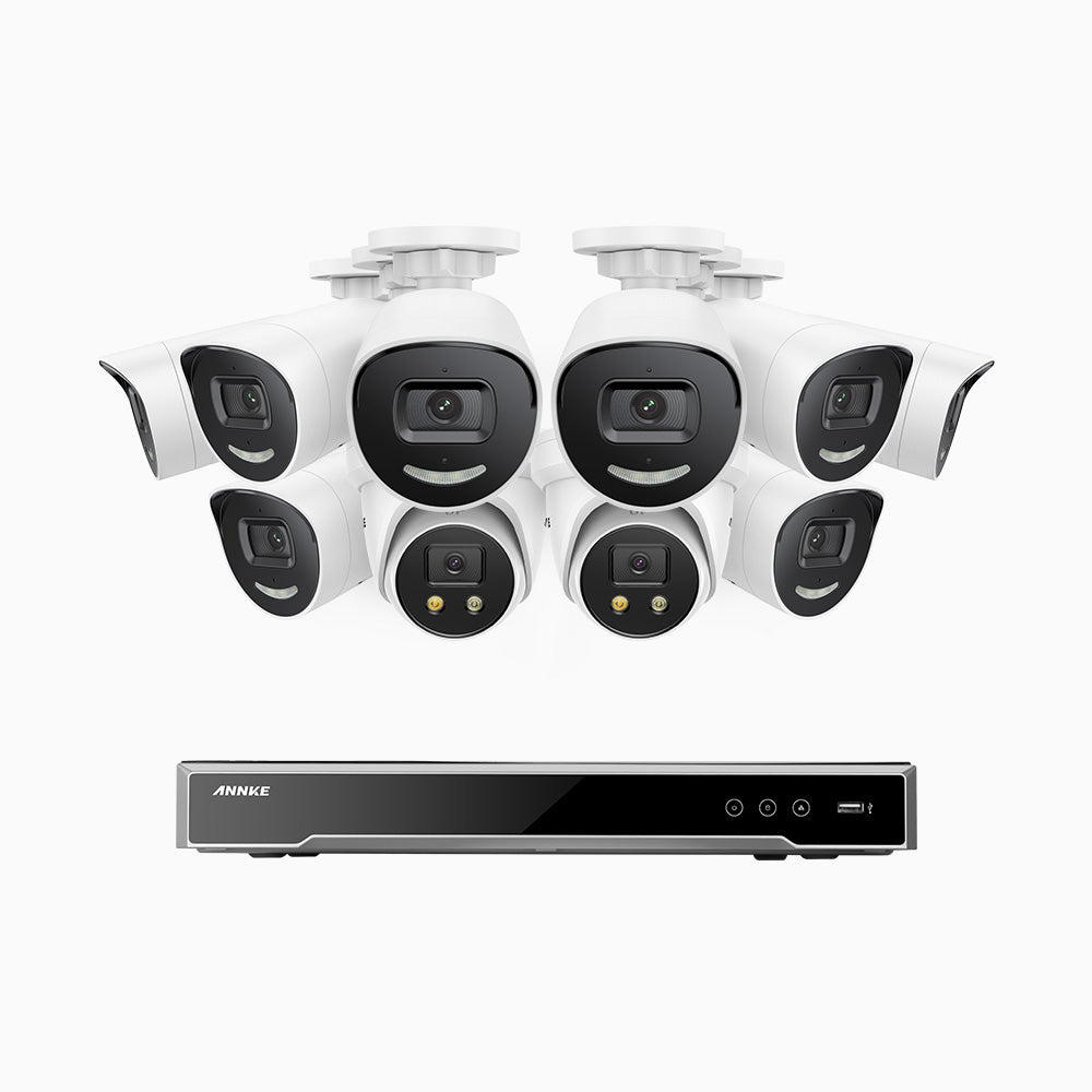 H800X - 4K 16 Channel PoE Security System with 8 Bullet & 2 Turret Cameras, 1/1.8'' BSI Sensor, f/1.6 Aperture (0.003 Lux), Siren & Strobe Alarm,Two-Way Audio, Human & Vehicle Detection, Perimeter Protection, Works with Alexa, All-Metal Housing