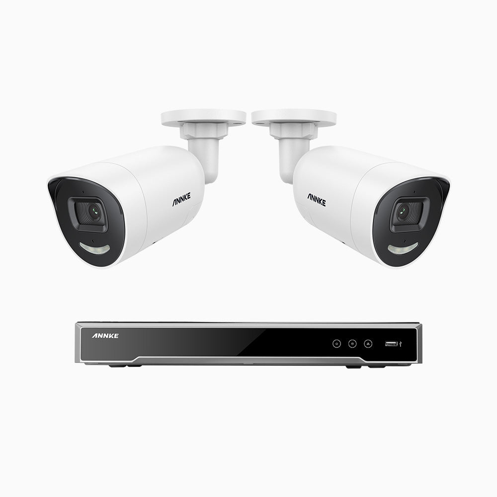 H800X - 4K 8 Channel 2 Cameras PoE Security System, 1/1.8'' BSI Sensor, f/1.6 Aperture (0.003 Lux), Siren & Strobe Alarm,Two-Way Audio, Human & Vehicle Detection, Perimeter Protection, Works with Alexa, All-Metal Housing