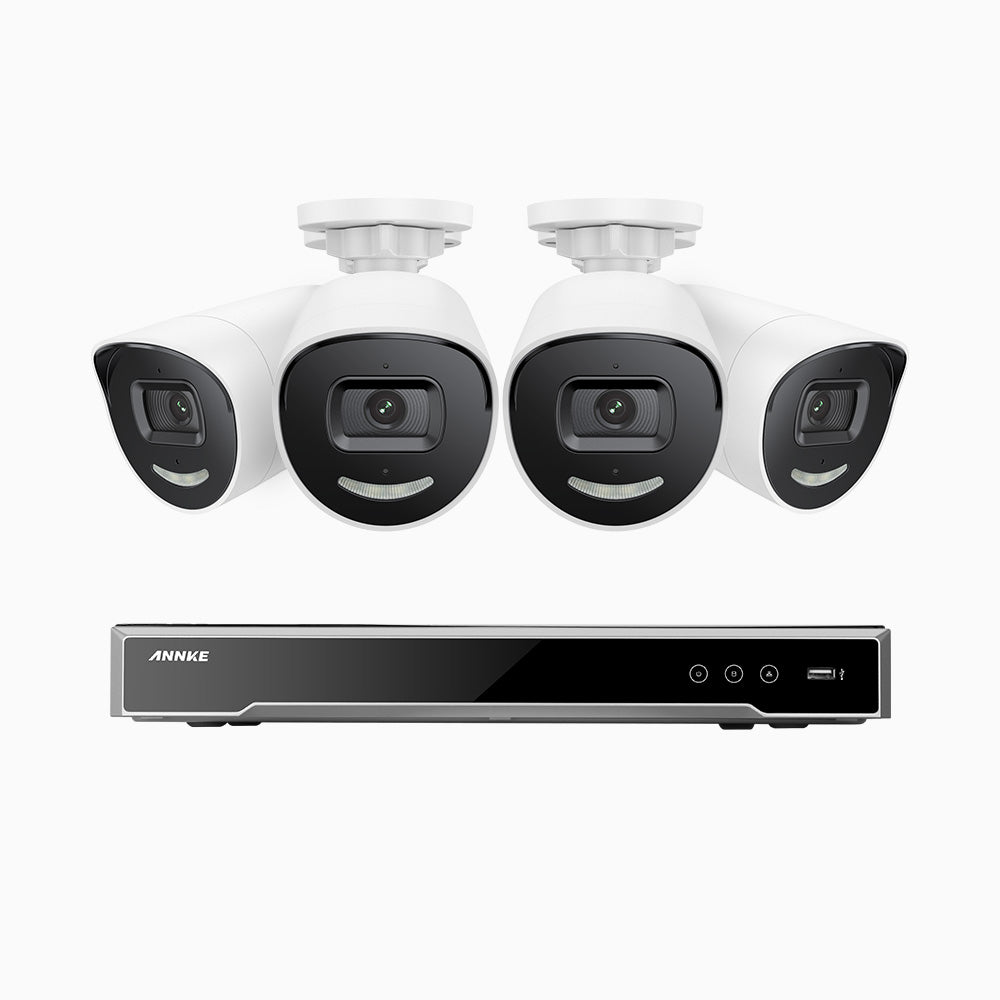 H800X - 4K 8 Channel 4 Cameras PoE Security System, 1/1.8'' BSI Sensor, f/1.6 Aperture (0.003 Lux), Siren & Strobe Alarm,Two-Way Audio, Human & Vehicle Detection, Perimeter Protection, All-Metal Housing