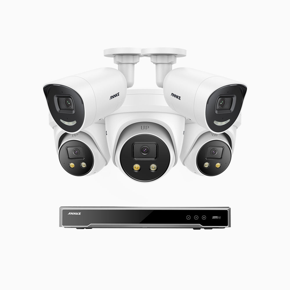 H800X - 4K 8 Channel PoE Security System with 2 Bullet & 3 Turret Cameras, 1/1.8'' BSI Sensor, f/1.6 Aperture (0.003 Lux), Siren & Strobe Alarm,Two-Way Audio, Human & Vehicle Detection, Perimeter Protection, Works with Alexa, All-Metal Housing