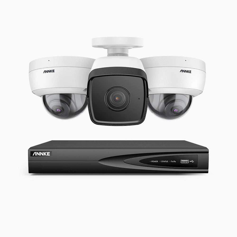 H500 - 3K 4 Channel PoE Security System with 1 Bullet & 2 Dome Cameras, EXIR 2.0 Night Vision, Built-in Mic & SD Card Slot, Works with Alexa ,IP67 Waterproof, RTSP Supported