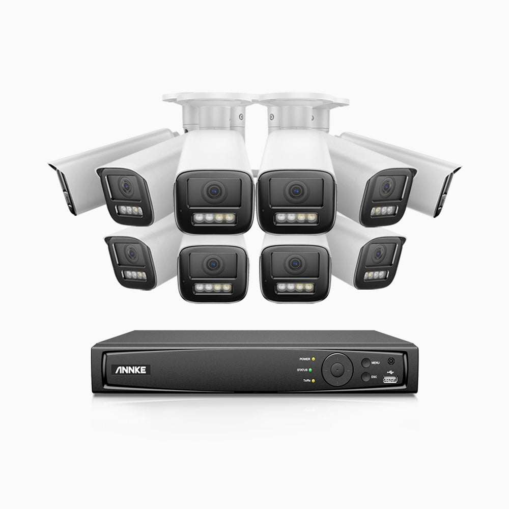 HZ804 - 4K 16 Channel 10 Cameras PoE Security System, 4X Optical Zoom, 2.8 - 12 MM Motorized Varifocal Lens, Smart Dual Light Night Vision, Motion Detection 2.0, Built-in Microphone, Siren & Strobe Alarm, Upgraded Version