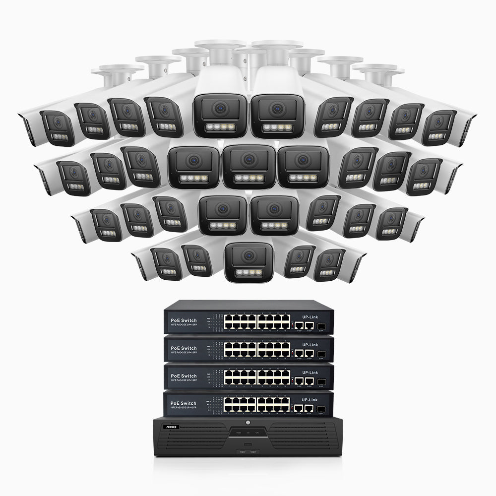 HZ804 - 4K 64 Channel 40 Cameras PoE Security System, 4X Optical Zoom, 2.8 - 12 MM Motorized Varifocal Lens, Smart Dual Light Night Vision, Motion Detection 2.0, Built-in Microphone, Siren & Strobe Alarm, Upgraded Version