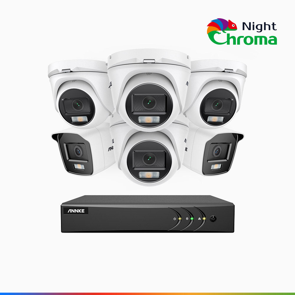 NightChromaTM NAK200 - 1080P 8 Channel Wired CCTV System with 2 Bullet & 4 Turret Cameras, Acme Colour Night Vision, f/1.0 Super Aperture, 0.001 Lux, 121° FoV, Active Alignment