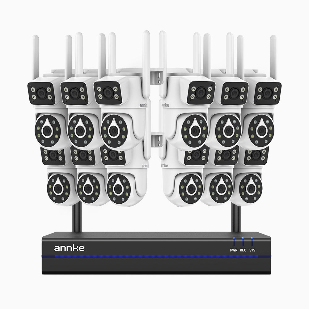 WCDS400 - 4MP 16 Channel 12 Dual-Lens WiFi Cameras Outdoor Wireless NVR Security System, 2.4G/5G Dual-Band WiFi, 350° Pan & 90° Tilt, Dual-Light Night Vision, Motion Detection, Two-Way Audio, Works with Alexa